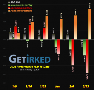 Get-Irked-Year-to-Date-Performance-Investments-in-Play-vs-Speculation-in-Play-vs-Pandemic-Portfolio-2026-2-13 Feb 13, 2026 Submit a Comment Cancel replyYou must be logged in to post a comment. This site uses Akismet to reduce spam. Learn how your comment data is processed.