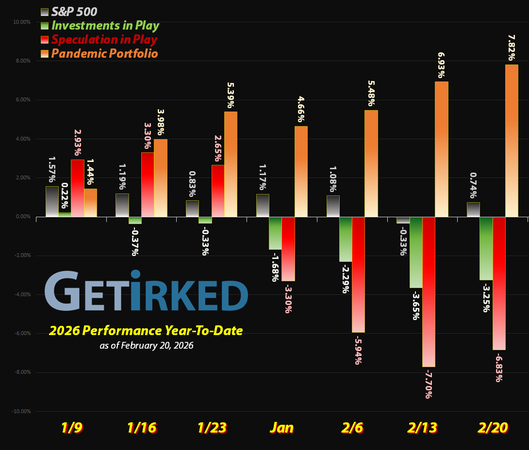 Get-Irked-Year-to-Date-Performance-Investments-in-Play-vs-Speculation-in-Play-vs-Pandemic-Portfolio-2026-2-20 Feb 20, 2026 Submit a Comment Cancel replyYou must be logged in to post a comment. This site uses Akismet to reduce spam. Learn how your comment data is processed.
