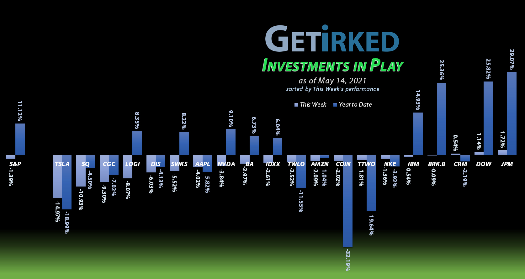 With concerns that CEO Elon Musk might be losing it (again) combined with lofty valuations and a market that hates overvalued growth stocks, Tesla (TSLA) took a dump this week, crashing -14.97% and earning itself the spot of The Week’s Biggest Loser.