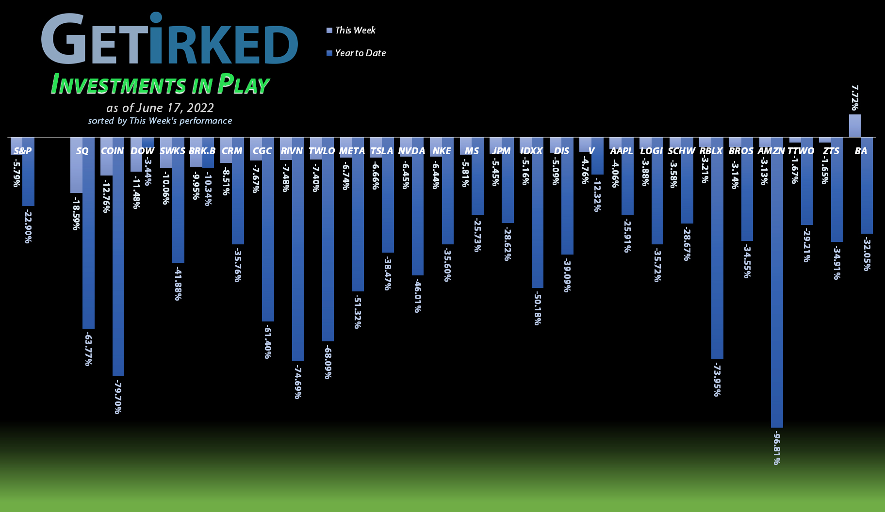 Fintech’s been in trouble for weeks and with Bitcoin getting slammed down nearly -30%, any stock with exposure to the crypto got hit, too. So, it was no surprise that Block (SQ), a fintech company with Bitcoin exposure, took the brunt of the week’s beatings, finishing the week down -18.59% and locking in the spot of the Week’s Biggest Loser.