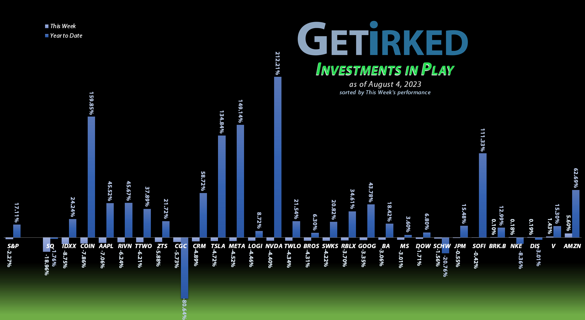 SOFI closed the week at $9.50, down -15.85% from where I took profits Monday.