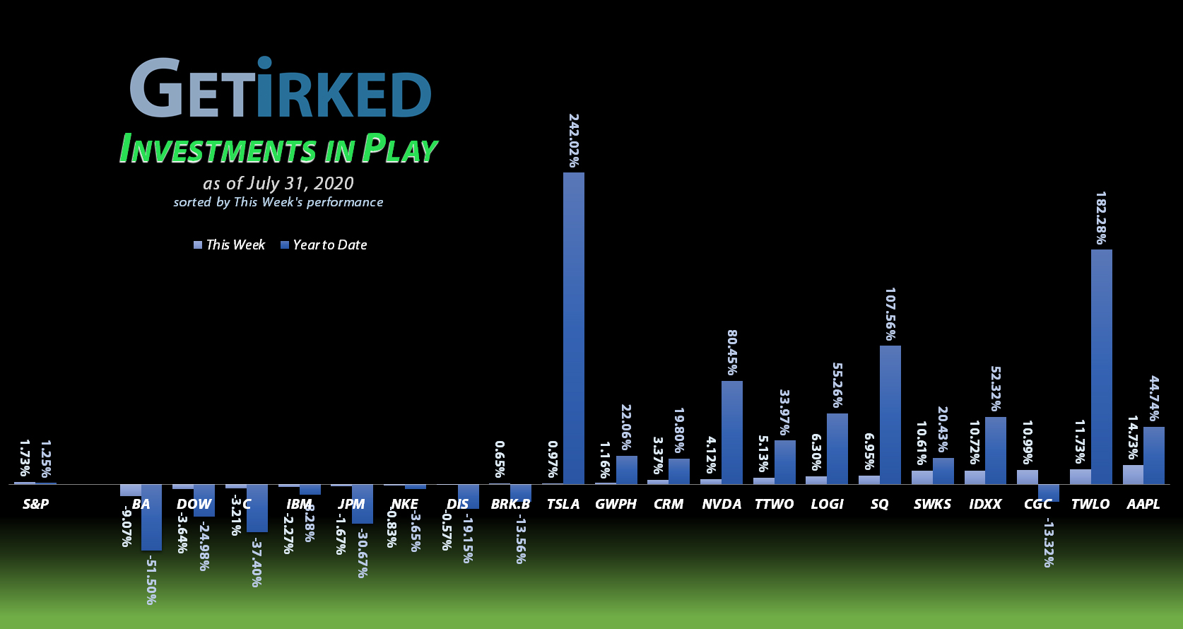 Apple reported a blowout quarter, announced a 4:1 stock split, with the news causing the behemoth to spike +14.73% in the week and definitively landing the Biggest Winner spot.