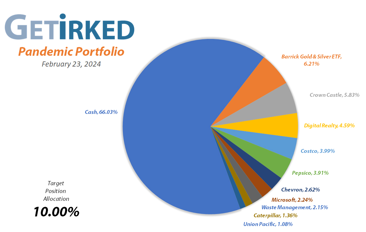 When the markets sold off as a result of the unexpected rise in inflation from the Consumer Price Index (CPI) on Tuesday, February 13, I opened a new position in Union Pacific (UNP), the locomotive transport, buying 11.43% of my desired allocation at $245.50.