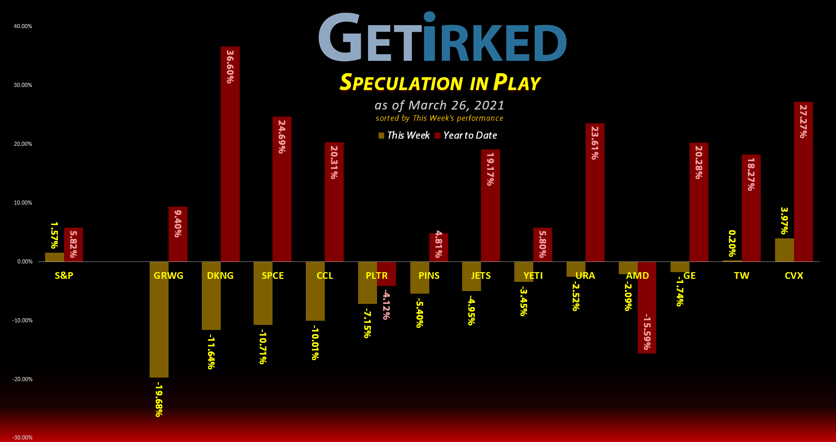 When high-flying growth stocks and speculative names see a market rotation, it becomes very obvious in this portfolio as Chevron (CVX), an oil company, brought home the Week’s Biggest Winner with a relatively minor +3.97% gain.