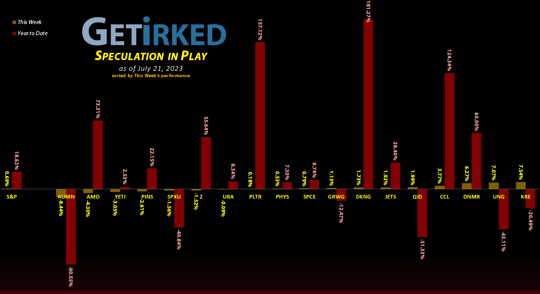 As a result, the Regional Banks ETF (KRE) popped +7.54% this week, cashing in as the portfolio’s biggest winner.