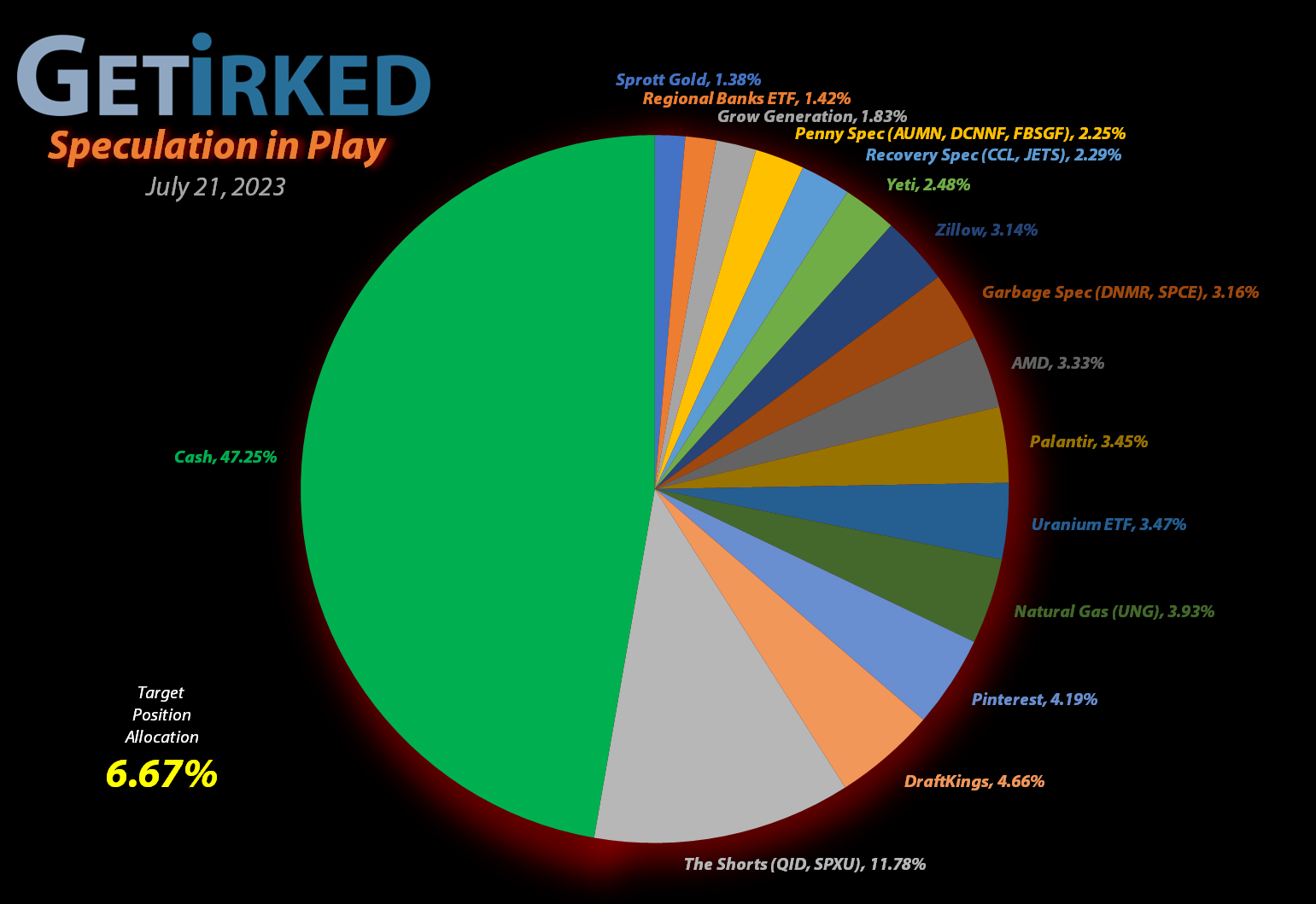 PLTR closed the week at $16.43, down -7.07% from my $17.68 average price.