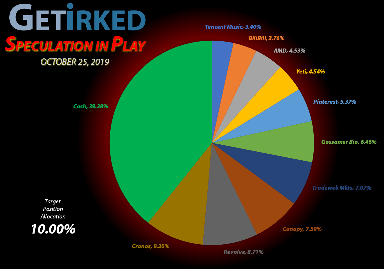 At this point, my position is about 18-19% overweight to my allocation target (on a cost basis) so I’m holding off any additional buying until we see where RVLV goes from here. Mind-blowingly, hedge funds and other analysts continue to be wildly bullish on RVLV and its forward-looking prospects, however, I’m holding pat with my current allocation.