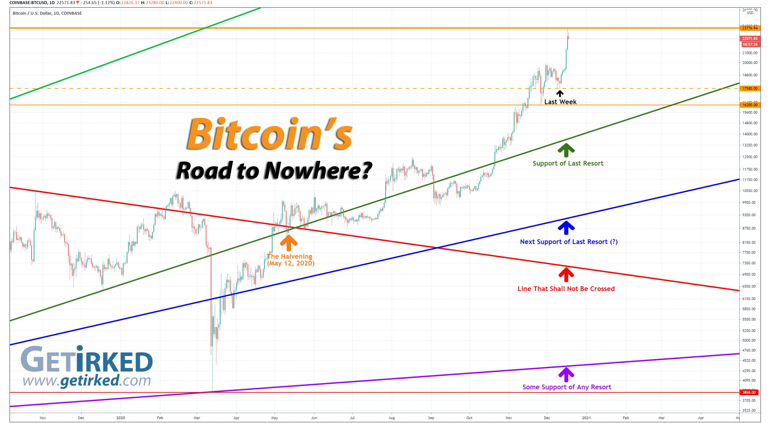 Bitcoin bounced hard off of last week’s lows, making another run at its all-time high of $19,915.14 on Saturday and Sunday last weekend, which proved to only be the beginning of a breakout rally culminating in an outrageous all-time high of $23,776.94 on Thursday, crashing through the nearly-mythic $20K mark for the first time ever in spectacular fashion.