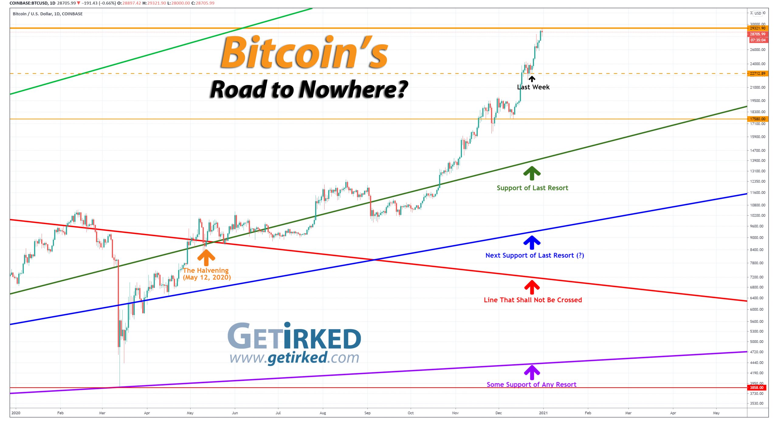Starting early Christmas morning, Bitcoin decided to offer up a holiday surprise and notched several new all-time highs over the extended weekend and into the New Year’s week with the last one setting the bar at its incredible new high of $29,321.90 on Thursday, a 20.67% increase over the previous $24,300.00 high set last week.