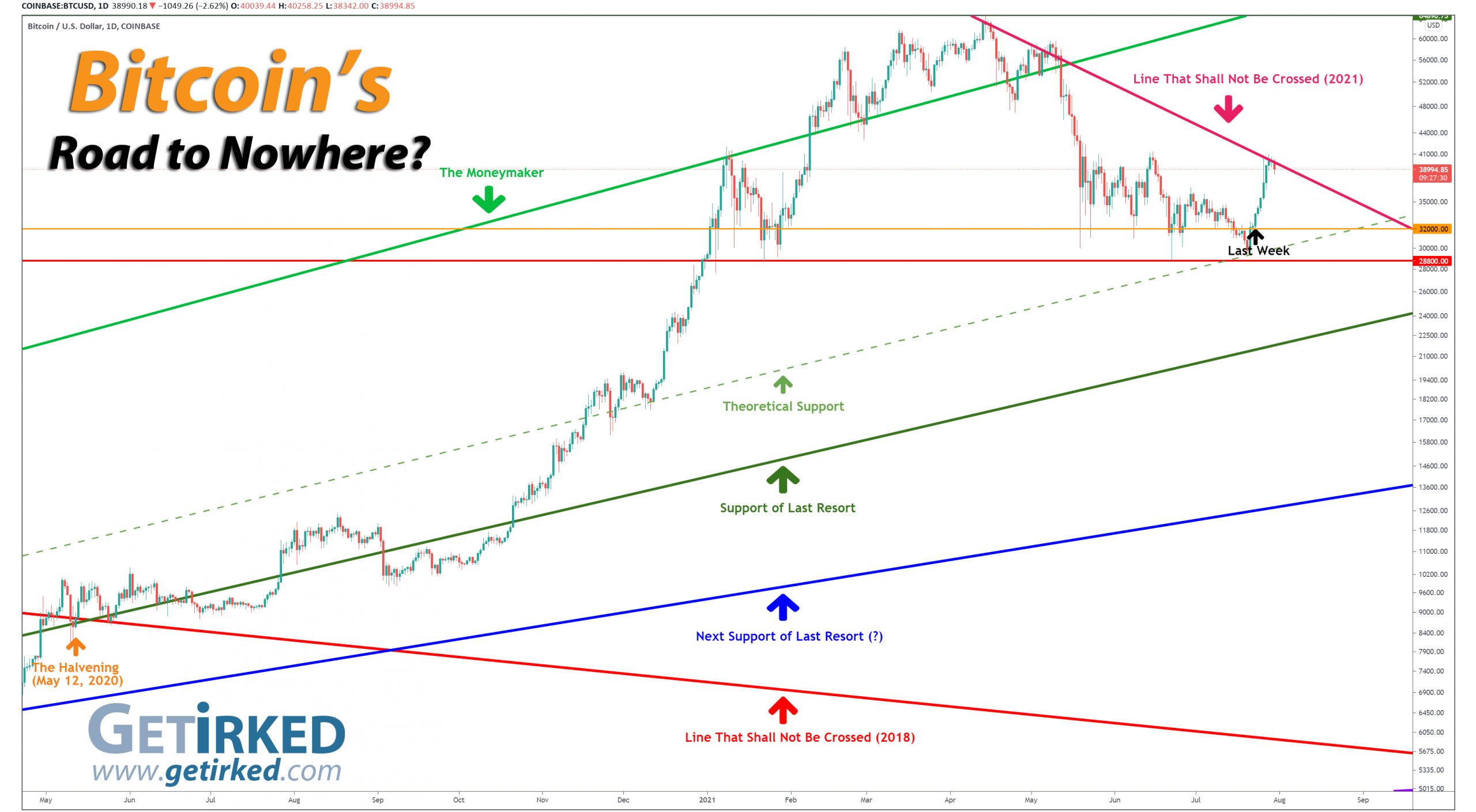 The Line That Shall Not Be Crossed (2021) isn’t as a solid as it was over the past few months, having been solidly broken over the past week. I have adjusted it to create a potentially new line of resistance, however, I won’t have the same level of confidence in the new downtrend until we see it reverse Bitcoin’s current rally.