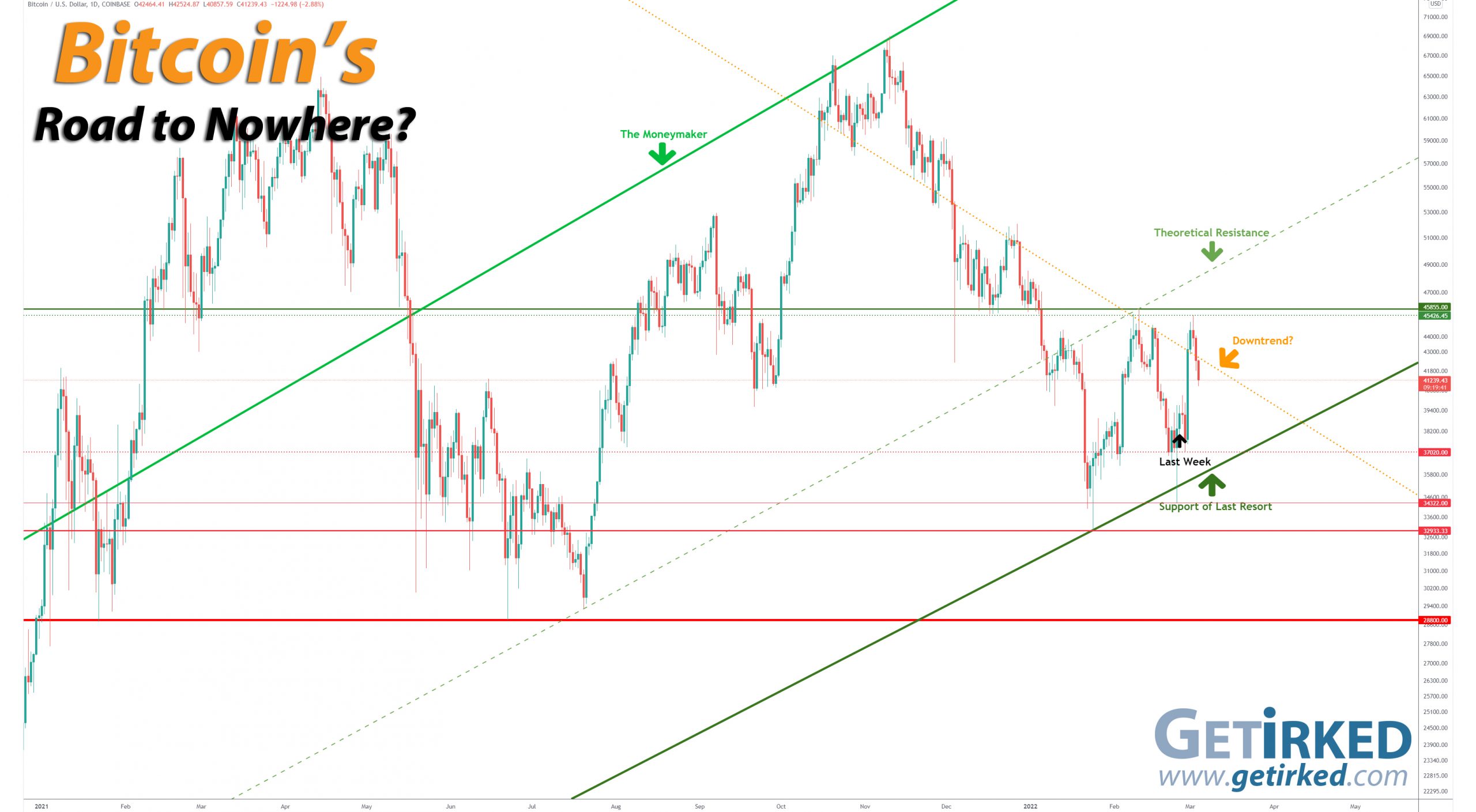 Get Irked contributors are not professional advisers. Discussions of positions should not be taken as recommendations to buy or sell. All investments carry risk and all readers must accept their own risks. Get Irked recommends anyone interested in investing or trading any asset class consult with a professional investment adviser to determine if an investment idea is suitable to them and their investment goals.Bitcoin Price (in USD)