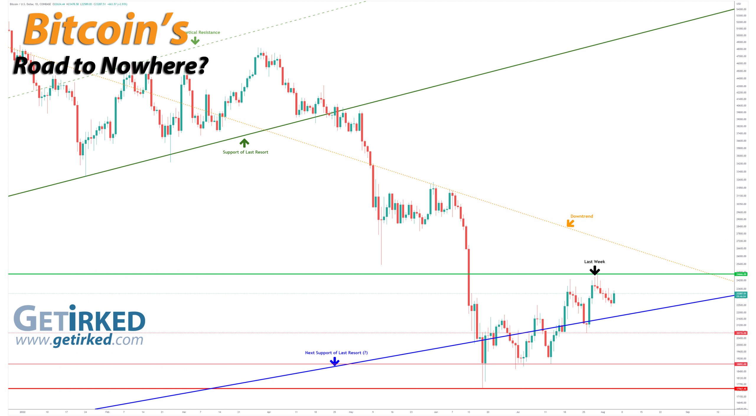 Since Bitcoin is currently still pulling back, there is no real weekly low set as the crypto takes on lower-lows, however, I would eye the Next Support of Last Resort trendline to potentially provide some support around the $21,700 mark.