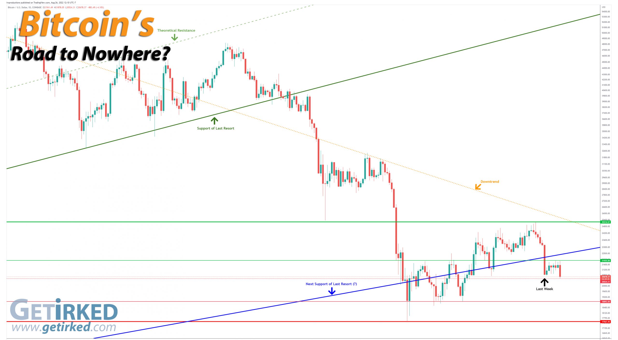 After Bitcoin’s -17.58% drop low last week, both Bulls and Bears were eagerly awaiting Bitcoin’s next move. Bitcoin took much of the week off, trading in a range, until Friday following the Federal Reserve press conference when Bitcoin collapsed again, breaking through the prior $20,715.00 weekly low before setting a new low at $20,524.31, a low that I don’t anticipate being very strong.