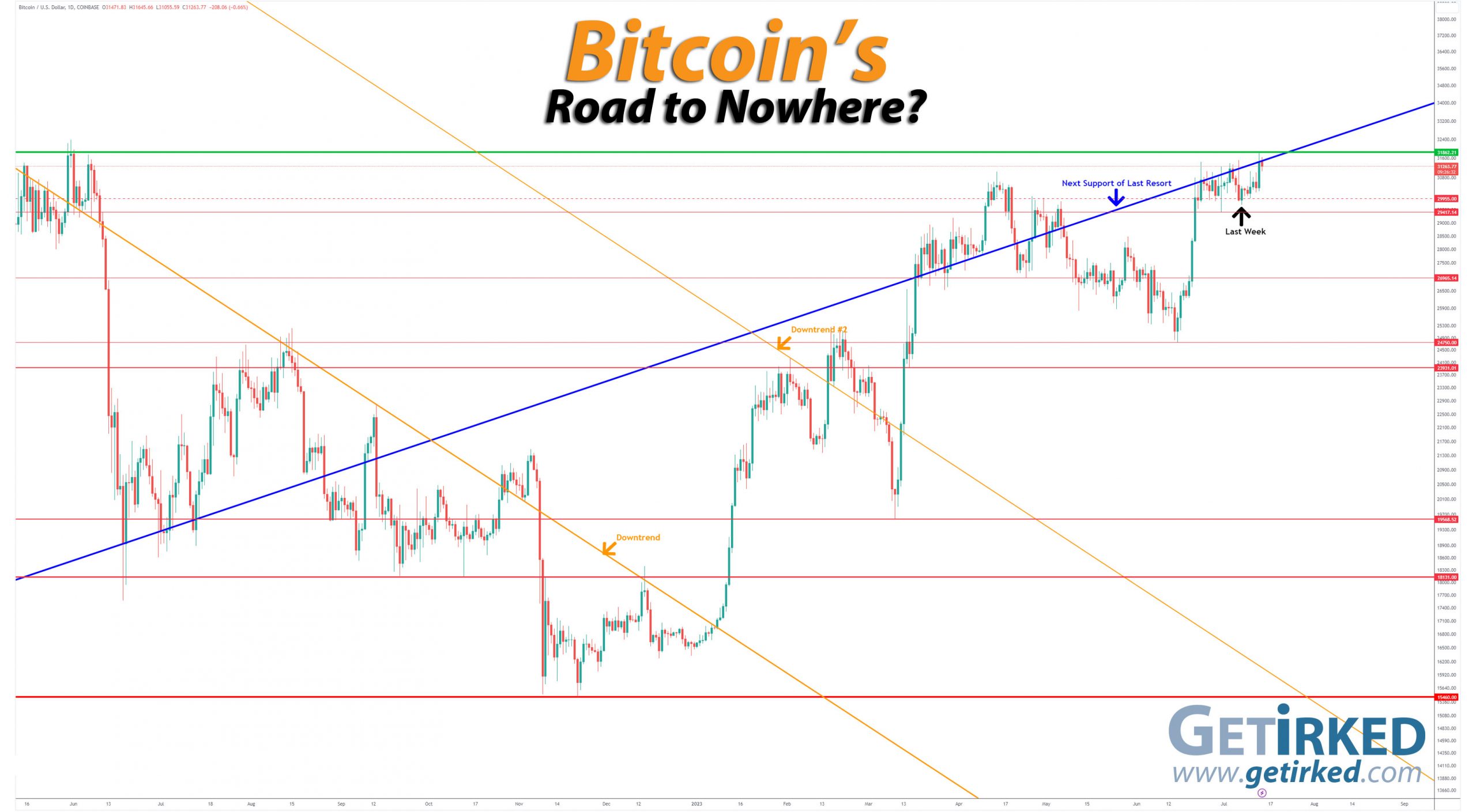 Bitcoin broke through the year-to-date high at $31,525.10 and set a new high at $31,862.21 on Thursday, where, oddly, the Next Support of Last Resort once again presented resistance to any further upside. Additionally, Bitcoin set a higher weekly low on Monday at $29,955.00 (up from $29,715.87 last week).