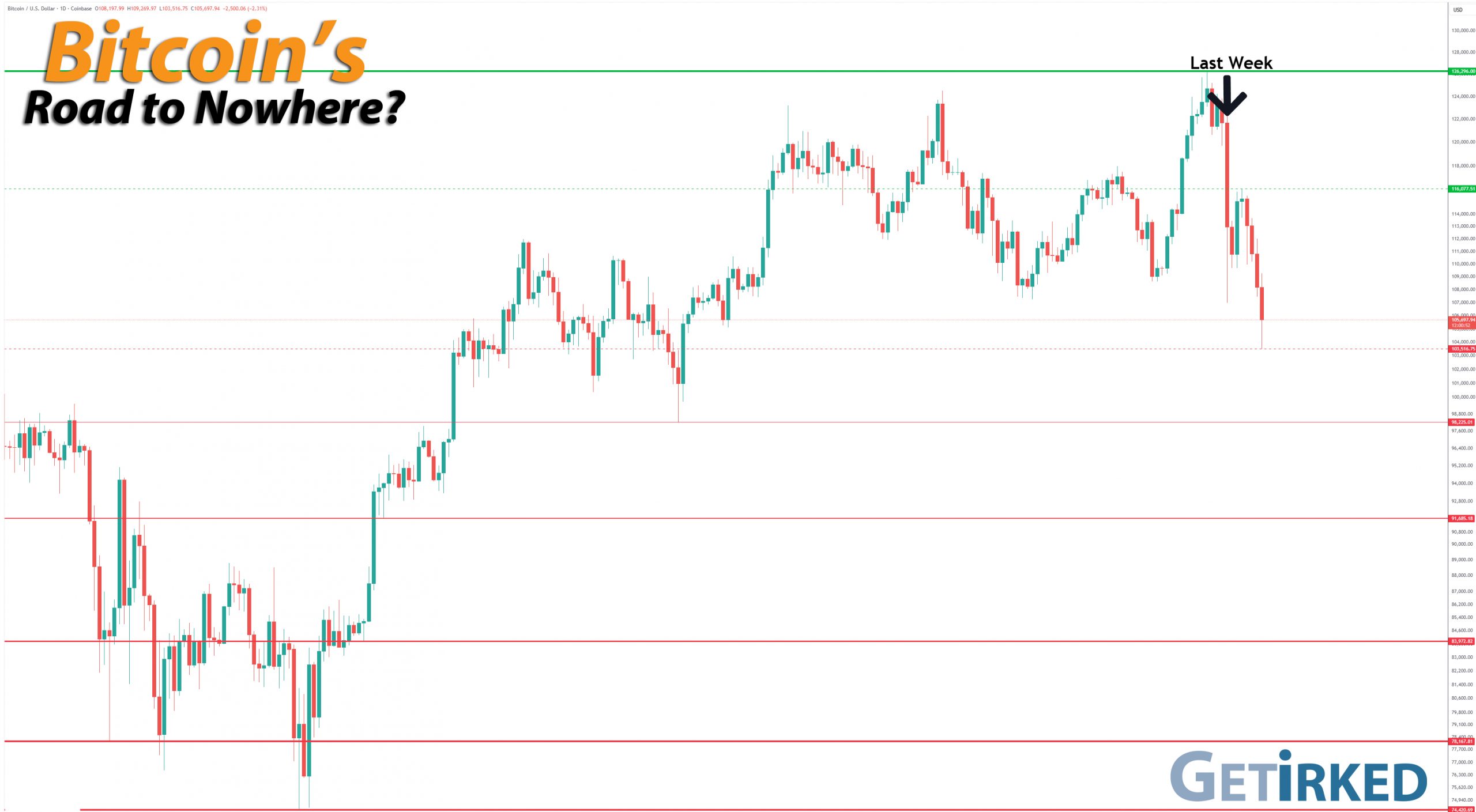 Early Friday morning (just a few hours before this update goes to “press”), another Bearish downdraft sent Bitcoin through the support it made last Friday, not finding new support until $103,516.75 on Coinbase ($103,000.00 even on Gemini).